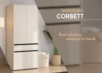 Colecția de dulapuri CORBETT este alcătuită din patru modele diferite în două combinații de decor – stejar artizanal și folie negru mat, pe de o parte, și cașmir și folie negru mat, pe cealaltă parte. Toate cele patru modele de dulapuri CORBETT prezintă dispoziții diferite ale spațiului util, format din piese cu bare de garderobă, rafturi, precum și o parte cu sertare. Toate modelele au o oglindă care are nu numai valoare utilă, ci și estetică.