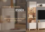 Sistemul de elemente ESSEX pentru amenajarea camerei de zi este o soluție ambientală atractivă. Combinația de decor de stejar artizanal și cașmir este dominantă și contribuie la căldura ambianței, în timp ce decorul subtil de stejar artizanal cu dungi negre contribuie semnificativ la atractivitatea acestui sistem de elemente. Sistemul de elemente ESSEX este alcătuit din 7 elemente care reprezintă o soluție completă pentru echiparea camerei de zi. Unele elemente ale sistemului oferă posibilitatea de a adăuga un sistem de iluminare