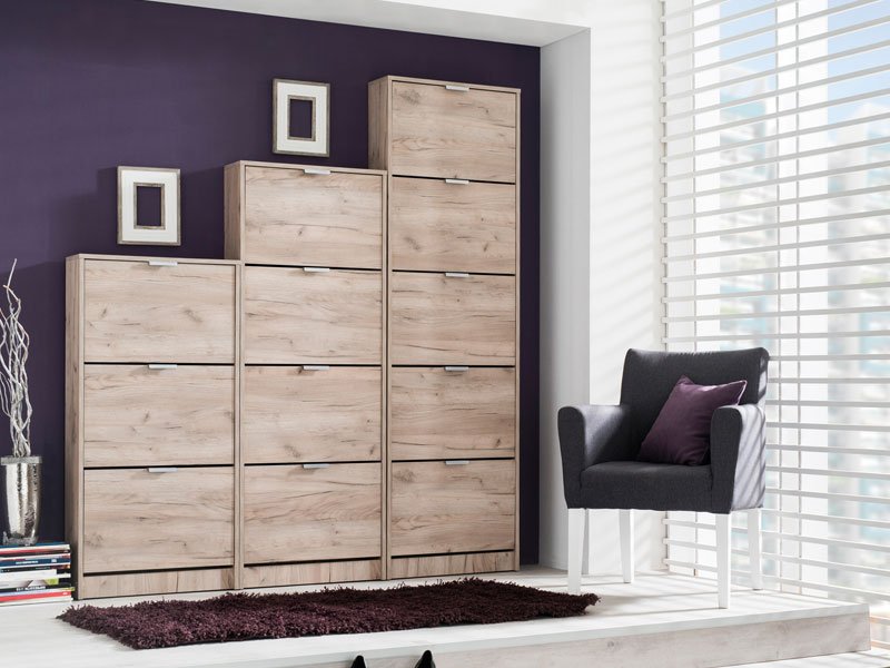 Pantofar BASE are rafturi pentru depozitarea încălțămintei sezoniere și, datorită dimensiunilor sale, acesta reprezintă o soluție funcțională pentru decorarea holurilor mai mici.