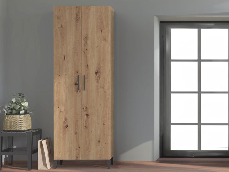 Cu un decor de stejar Artisan și rafturi închise pentru depozitarea încălțămintei, pantofarul BUSETO 2K este o soluție foarte practică, care vă oferă posibilitatea de a organiza holul într-un mod rațional.