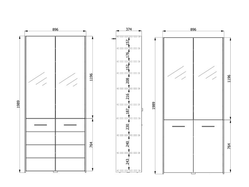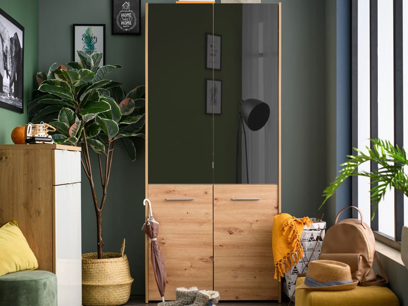 Modelul pantofarului MENORICA 2K 2OG, în decor de stejar artizanal, este îmbogățit cu două oglinzi practice în partea superioară a elementului. În interior există etajere închise pentru depozitarea încălţămintei, ceea ce oferă posibilitatea organizării raționale a holului.