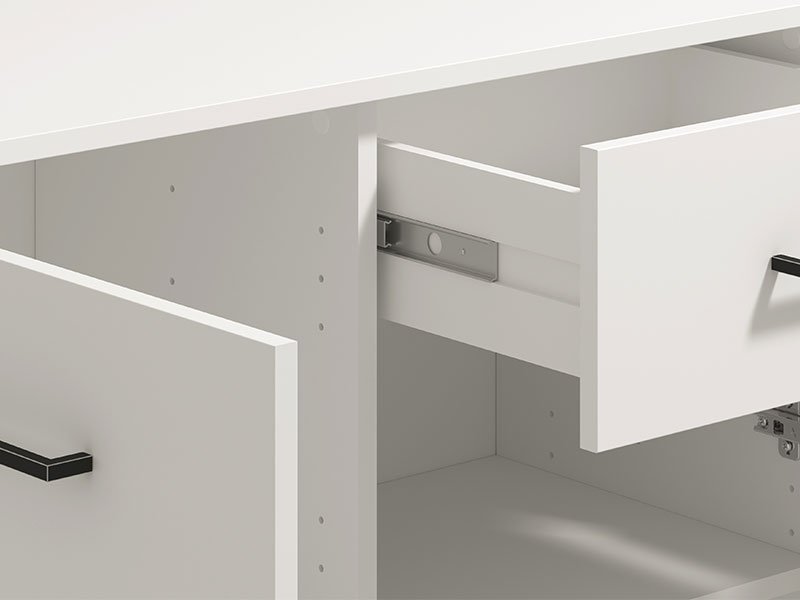 Spațiul util perfect amenajat al acestei comode este alcătuit din trei compartimente închise și un sertar practic.