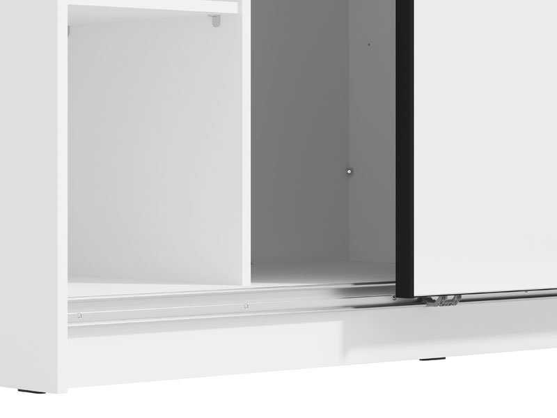Cu un model opac alb combinat cu folie de lac alb 3D MDF și o aplicație, dulapul KSANTI 220 OG face parte din colecția de elemente pentru dormitor cu același de nume. Acest model de dulap glisant are o tijă în partea de mijloc și rafturi la dreaptă și la stângă. Dulapul KSANTI 220 OG are o oglindă pe elementul glisant pe partea stângă. Există posibilitatea de a instala un încetinitor la mecanismul glisant, ceea ce contribuie la siguranța și funcționalitatea acestui model.