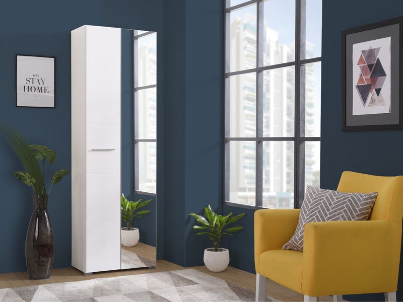 Elementul BENY 2K OG pentru hol, cu desen alb și folie de lac alb, va aduce prospețime și eleganță în holul dvs., precum și o notă practică, datorită segmentului cu două aripi, celor trei rafturi și agățătoarei pentru depozitarea garderobei. Se poate combina cu elementele omonime, care completează interiorul la intrarea casei dvs.