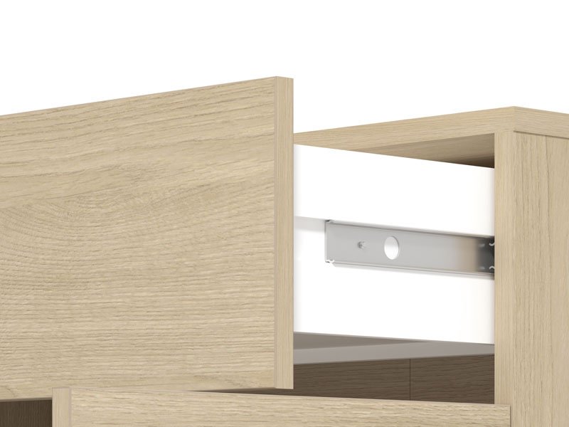 Elementul de hol RATHLIN 2K1F2V, cu decor de stejar portuar deschis, are o parte practică închisă cu două aripi pentru depozitarea pantofilor, care constă dintr-o aripă cu rafturi și un sertar spațios. Se poate combina cu alte elementele din colecția RATHLIN pentru hol, care vor completa intrarea în locuința dvs.