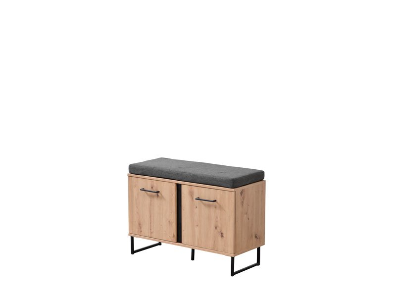 Elementul de hol SARDINIA KOM combină căldura stejarului artizanal natural și rustic cu un amestec de elemente negre subtile de decor, care sunt caracteristice pentru interioarele decorate în stil industrial. Are o parte practică închisă, alcătuită din două segmente, pentru depozitarea pantofilor, și o pernă cu un model gri pe care vă puteți așeza. Se poate combina cu alte elementele din colecția SARDINIA pentru hol, care completează interiorul întrării în locuința dvs.