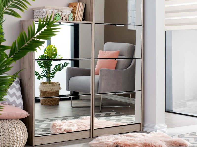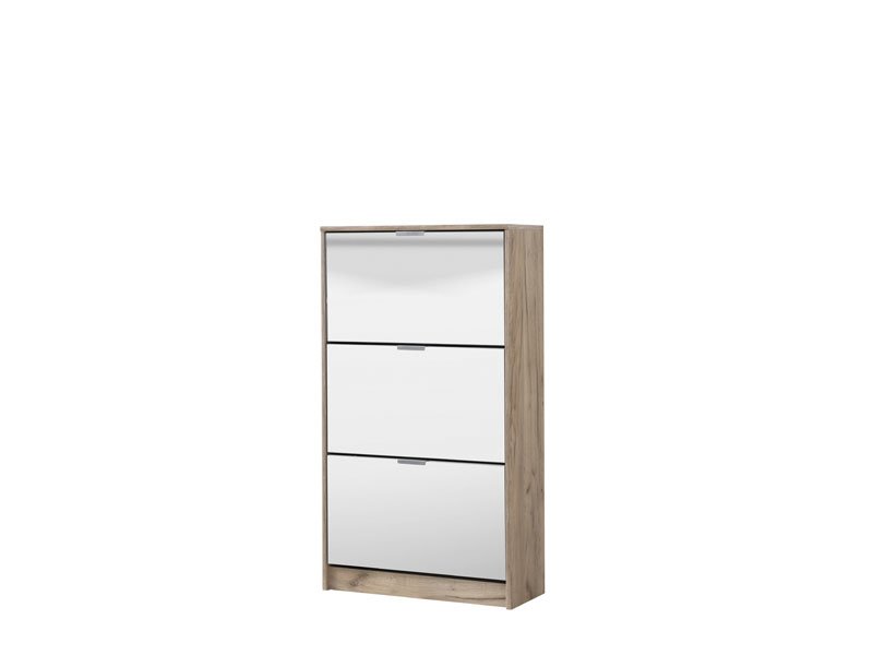 Cu o combinație de oglindă și corp cu decor din stejar gri, Elementul HUGO 23 OG are trei segmente pentru depozitarea încălțămintei de sezon, iar datorită dimensiunilor sale și organizării spațiului pe două rânduri, acesta reprezintă o soluție funcțională foarte eficientă pentru amenajarea holurilor de dimensiuni modeste.