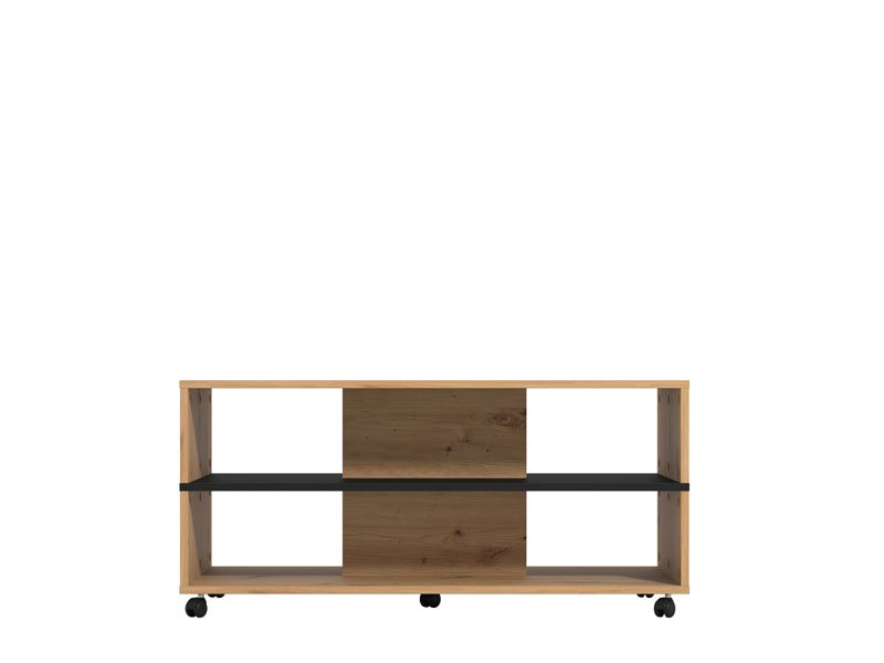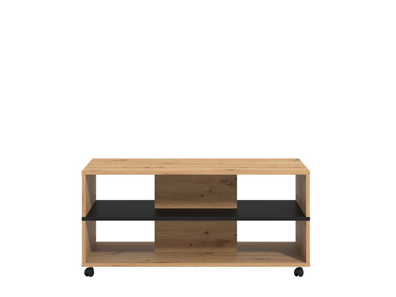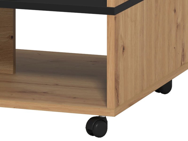 Cu o combinație de decor negru și decor de stejar artizanal, măsuța SAVIO oferă beneficii practice și estetice. Detaliul dominant al acestei măsuțe este un raft eficient cu decor contrastant, amplasat sub suprafața de lucru și potrivit pentru depozitarea cărților sau revistelor preferate. Măsuța SAVIO contribuie la conceptul tematic modern pentru amenajarea camerei de zi.