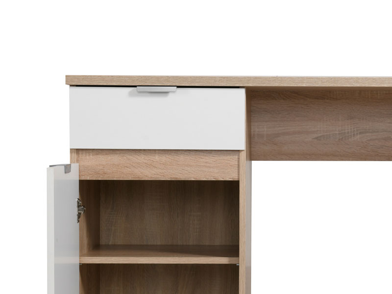 Birou JAN făcută din stejar și cu model alb va contribui la crearea unui spațiu de lucru care permite obținerea unor rezultate maxime. Acest model are o suprafață de lucru practică, sub care este un sertar și un segment închis pentru păstrarea tuturor lucrurilor importante.