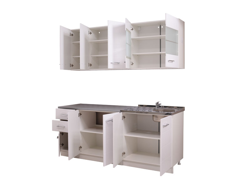 Bucătăria DIVA, cu desen alb și folie de lac alb, are o combinație adecvată de elemente inferioare și superioare împrospătate cu un segment din sticlă sablată, drept pentru care aceasta se va potrivi în mod ideal cu diverse aranjamente ambientale. Oferă destul loc pentru vesela dvs. preferată și toate acele lucruri, la care nicio femei nu poate renunța. Elementul inferior, cu două componente practice și un segment suplimentar de depozitare, va contribui la funcționalitatea suplimentară a bucătăriei.