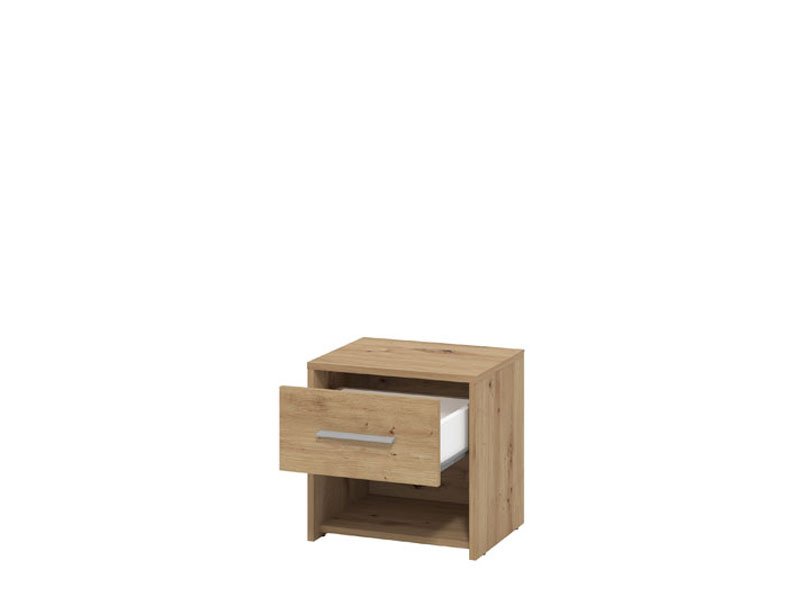 Cu decor de stejar artizanal, noptiera GARONA 2NO1F contribuie la funcționalitatea și eleganța întregii ambianțe. Spațiul util perfect amenajat al noptierei este alcătuit dintr-un sertar practic și un raft deschis.