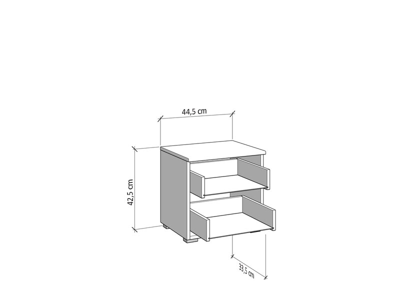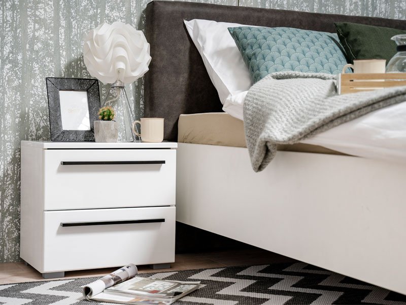 Cu un model opac alb și părțile frontale acoperite cu folie de lac alb, noptiera KSANTI NO2F face parte din colecția cu același de nume de elemente pentru dormitor. Noptiera KSANTI N02F are două sertare practice, situate vertical.