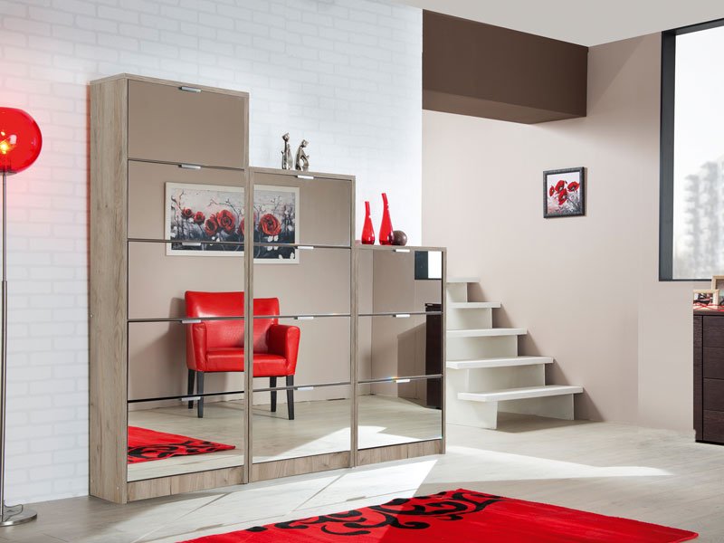 Cu o combinație de oglindă și corp cu decor din stejar gri, Elementul HUGO 24 OG are patru segmente pentru depozitarea încălțămintei de sezon, iar datorită dimensiunilor sale și organizării spațiului pe două rânduri, acesta reprezintă o soluție funcțională foarte eficientă pentru amenajarea holurilor de dimensiuni modeste.