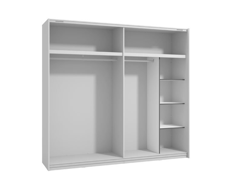 Denumirea exactă a modelului: corp opak alb, raft opak alb. Raftul functional FUP in decor alb rau, ca accesoriu, este destinat dotarii dulapurilor glisante cu o latime de 220 cm si o inaltime de 205 cm din gama Forma Ideale. Este format dintr-un cadru cu trei rafturi despărțitoare cu o tijă de dulap asortată.