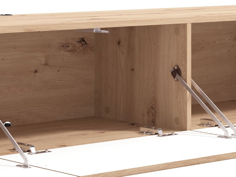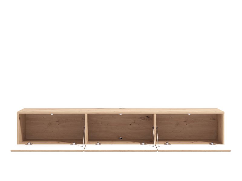 Cu o combinație de decor de stejar artizanal și folie de stejar artizanal, comoda TV ROYAN TV 192 3K3V este destinată amenajării camerei de zi și se caracterizează printr-un design modern și o notă estetică proeminentă. Este o piesă de mobilier funcțională care se va potrivi în mod ideal cu ambianța locuințelor moderne. Spațiul util este format din trei compartimente închise. Comoda TV ROYAN TV 192 3K3V este un model de consolă TV, care se numără printre cele mai frecvente trenduri în designul mobilierului din panouri. Acest model de comodă TV are posibilitatea de a se adăuga un sistem de iluminare.